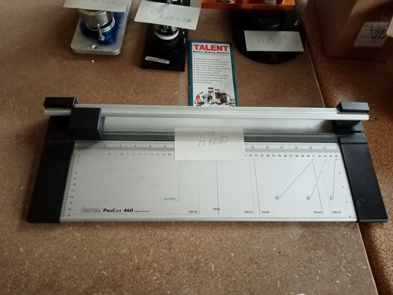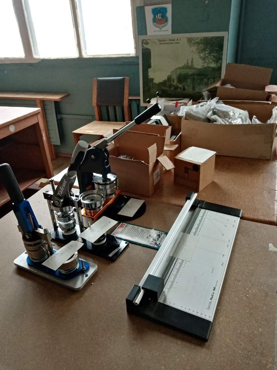 Лот № 8. Комплект оборудования и материалов для изготовления значковОборудование и инвентарь: ПРЕСС ВТ 500 ДЛЯ ИЗГОТОВЛЕНИЯ ЗНАЧКОВ, инв. № 00227; ПРЕСС ДЛЯ ЗНАЧ. В КОМПЛ. инв. № 00227, ЗHАЧКИ 25мм 476 шт.; Заготовка: Значок винил, магнит 58мм 97 шт.; Заготовка: Значок круглый 37мм винил, РФ, 105 шт.; Заготовка: Значок магнит 37мм, 200шт.; Заготовка: Значок металл/булавка, 37мм, 100 шт.; Заготовка: Значок металл/булавка, 75мм, 14 шт.; Заготовка: Магнит круглый, 75мм ФА06МАКР0750000, 759 шт.; Заготовки значков металл/булавка 37мм арт. МБ37, 400 шт.; Резак Hama для бумаги, Им; Резак круглый для вырубки 37мм настольный, РФ; Резак круглый для вырубки, 58мм, настольный ОБ01РЕКР0580037; Резак круглый для вырубки, 75мм, настольный ОБ01РЕКР0750038; Сменная насадка круглая 37мм, РФ; Сменная насадка круглая 58мм, РФ; Станок круглый 25-75мм (М), РФ; ЦИРКУЛЬ МЕТАЛИЧ.Д/ЗHАЧК.Д.37 |
