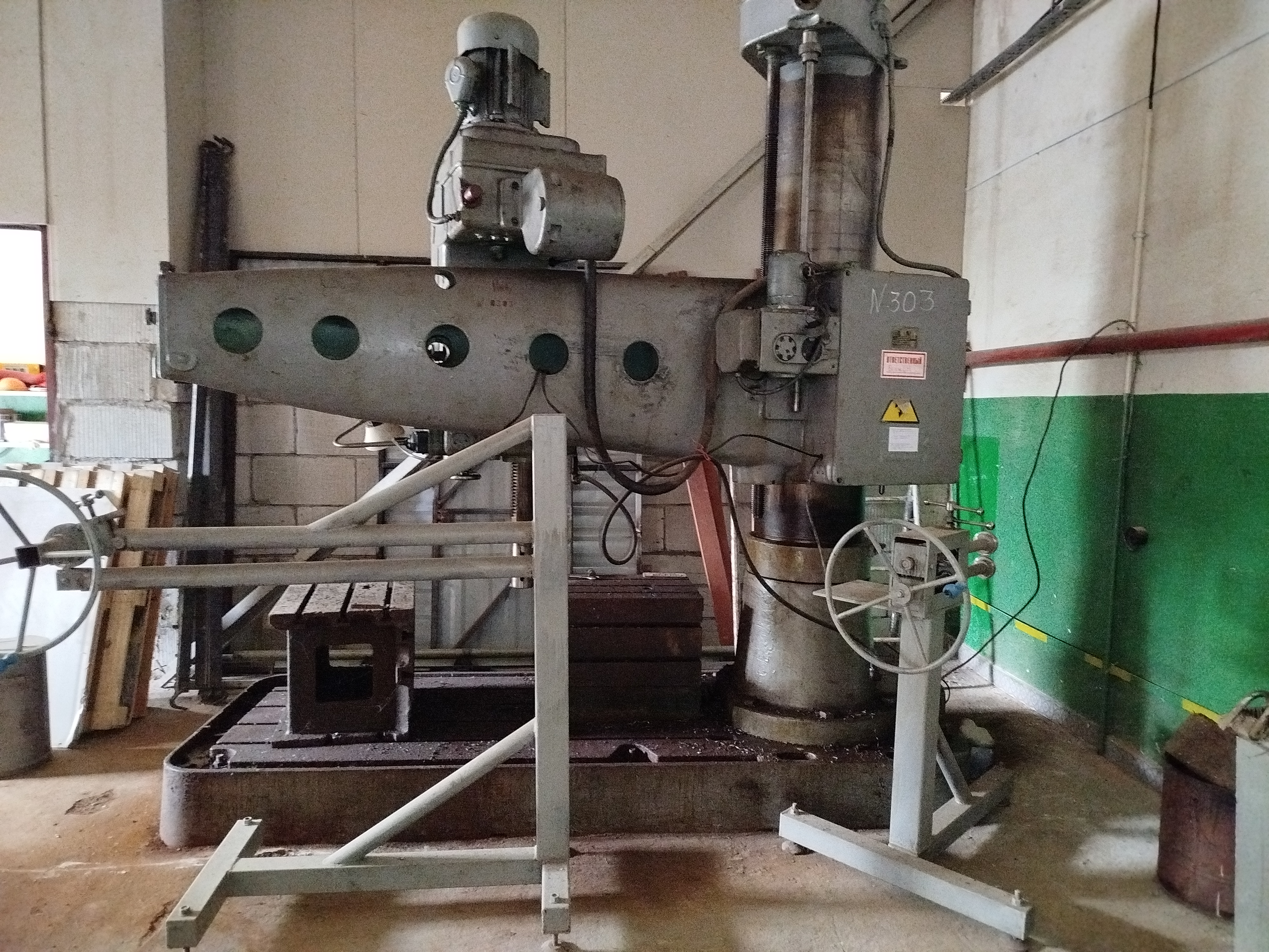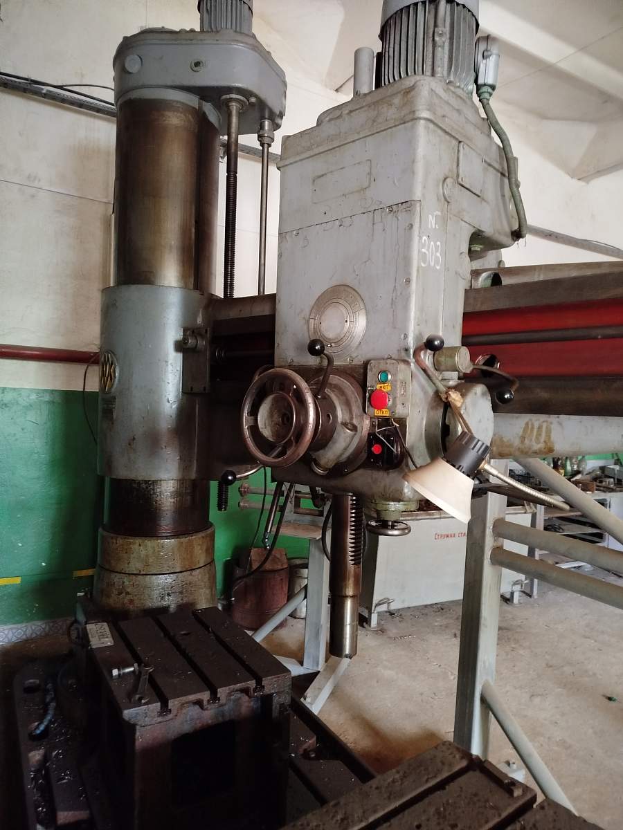 Лот №11 Радиально-сверлильный станок RF-31(инв. № 303)Станок радиально-сверлильный используется для сверления, зенкерования, рассверливания и нарезки резьб. Компоновка станка включает в себя стационарную плиту с пазами (Т-образными) для зажима обрабатываемой детали, закрепленную на фундаменте, на которой установлена внутренняя колонна и поворачивающуюся на подшипниках вокруг нее наружную колонну. Максимальный диаметр сверления, мм 75 Диаметр тонкой резьбы, мм 60 Размеры, мм: длина 2720, ширина 1130, высота 3400 Максимальная высота плеча (консоли),мм 950 Максимальное количество оборотов сверла 1900 об/мин Количество интервалов перемещений 12 мм/мин Зажимной размер стола, мм 1800x1100 Количество Т-пазов 4 T-пазы. мм 28x48x20x50 Масса станка, кг 6306 |