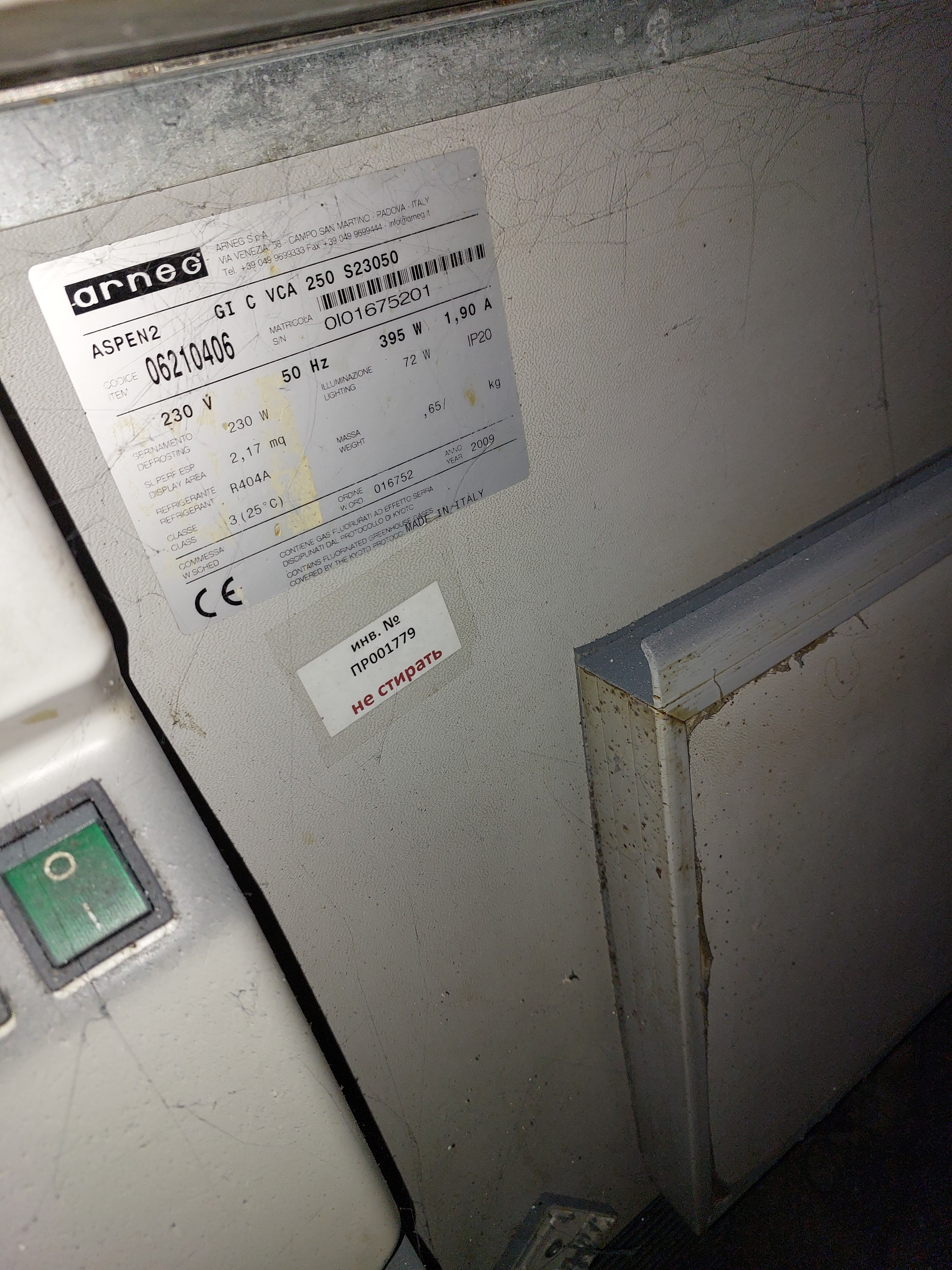 Наименование Витрина холодильная Модель Arneg S.p.A. Инвентарный номер ПР001779 Дата постановки на баланс март 2020 Дата выпуска 2009 год Производитель Россия Тип охлаждения Динамический Температурный режим + 2…+5 °С Габаритные размеры (см) 161*1165*1280 Назначение Хранение продуктов питания В связи с тем, что объект оценки долгое время не эксплуатировался, его работоспособность определить не представляется возможным. Имеет следы длительной эксплуатации. Необходима ревизия технической исправности отдельных узлов и агрегатов. Состояние определено как условно пригодное |