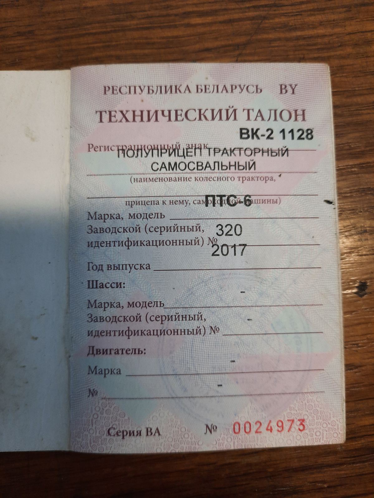 | Описание имущества | Лот №4. Полуприцеп тракторный самосвальный ПТС-6 2017 г.в., заводской номер 320, рег. знак ВК-2 1128, инв. №748 по адресу: Витебская область, Бешенковичский р-н, Бешенковичский с/с, аг.Дрозды. |