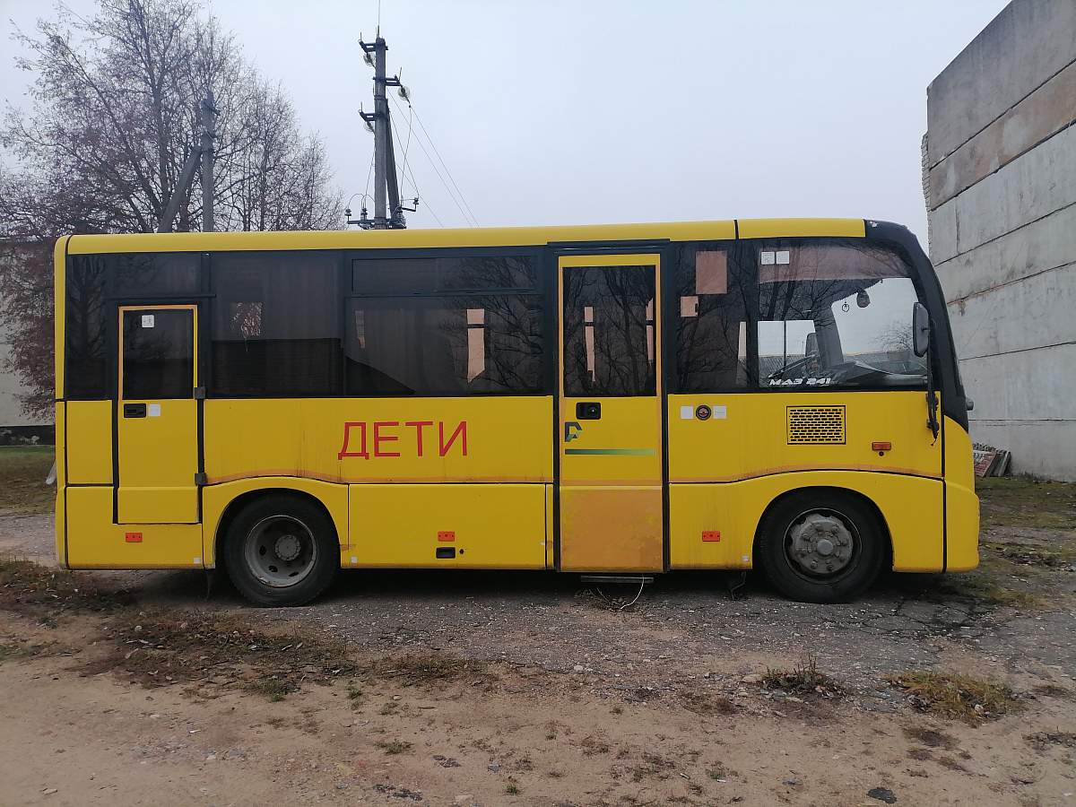 Автобус МAZ 241000, 2013 года выпуска, регистрационный знак АI 3750-2, тип ТС – автобус, вагон (WAGON), цвет – желтый, кузов (рама) № Y3М241000D0000088, инв.№ 01510028, автобус находится в исправном состоянии, проводился ремонт передней подвески, на автобусе стоят 6 колес, в августе 2021 года была полная замена всех шин, пробег составлял 255145 км, все шины выпущены в 2021г. С 01.06.2024 автобус не используется, показания спидометра 332696 км. согласно последнему путевому листу.