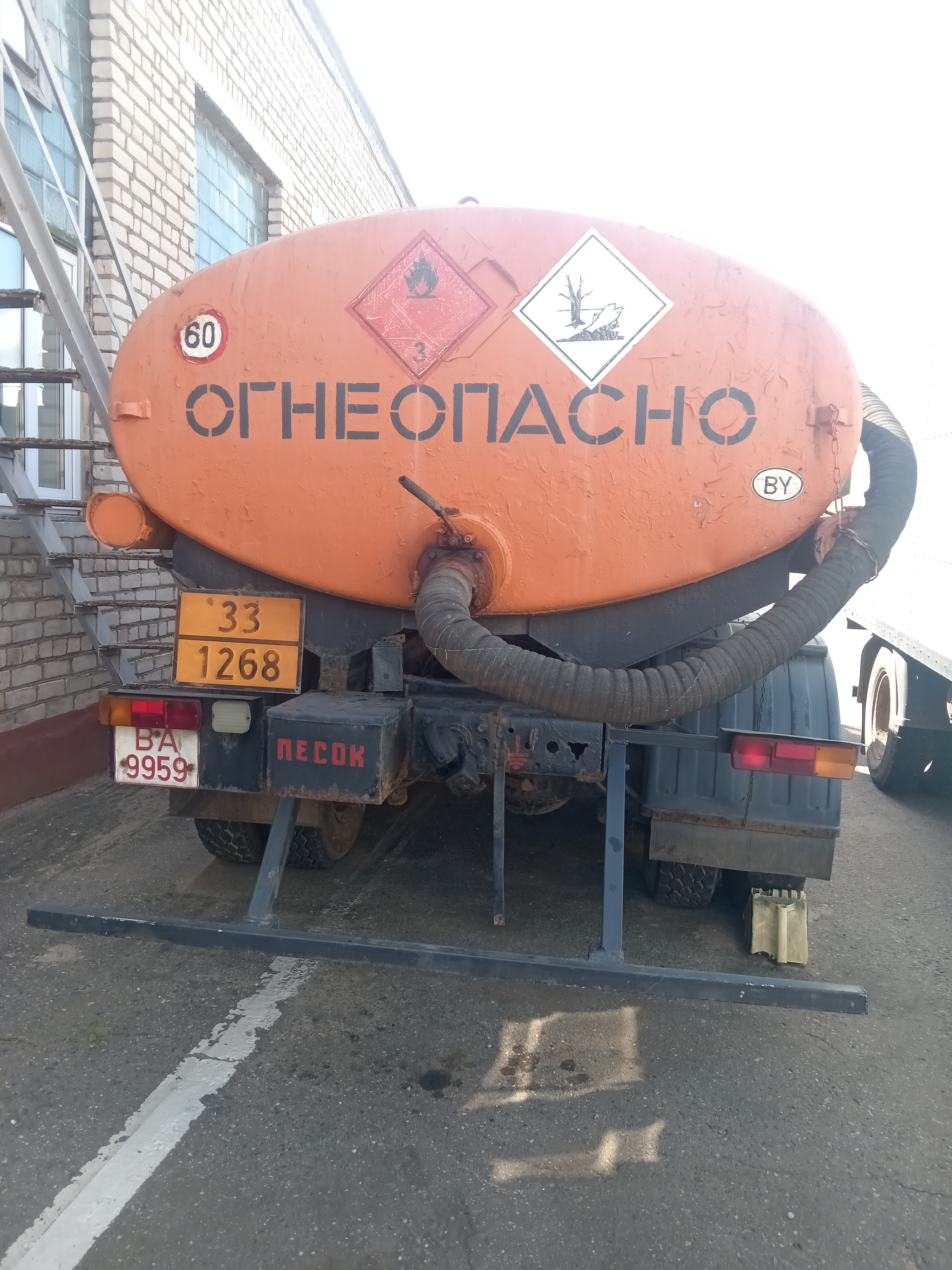 Лот № 1. Грузовая специальная цистерна (топливозаправщик) КАМАЗ 5320, регистрационный знак ВА9959, 1990 года выпуска, тип ТС – грузовой специальный цистерна, кузов (рама) 362265, цвет – тёмно-зеленый, объем двигателя 10,850 л., дизельное топливо, инвентарный № 0508087, пробег – 500000 км.