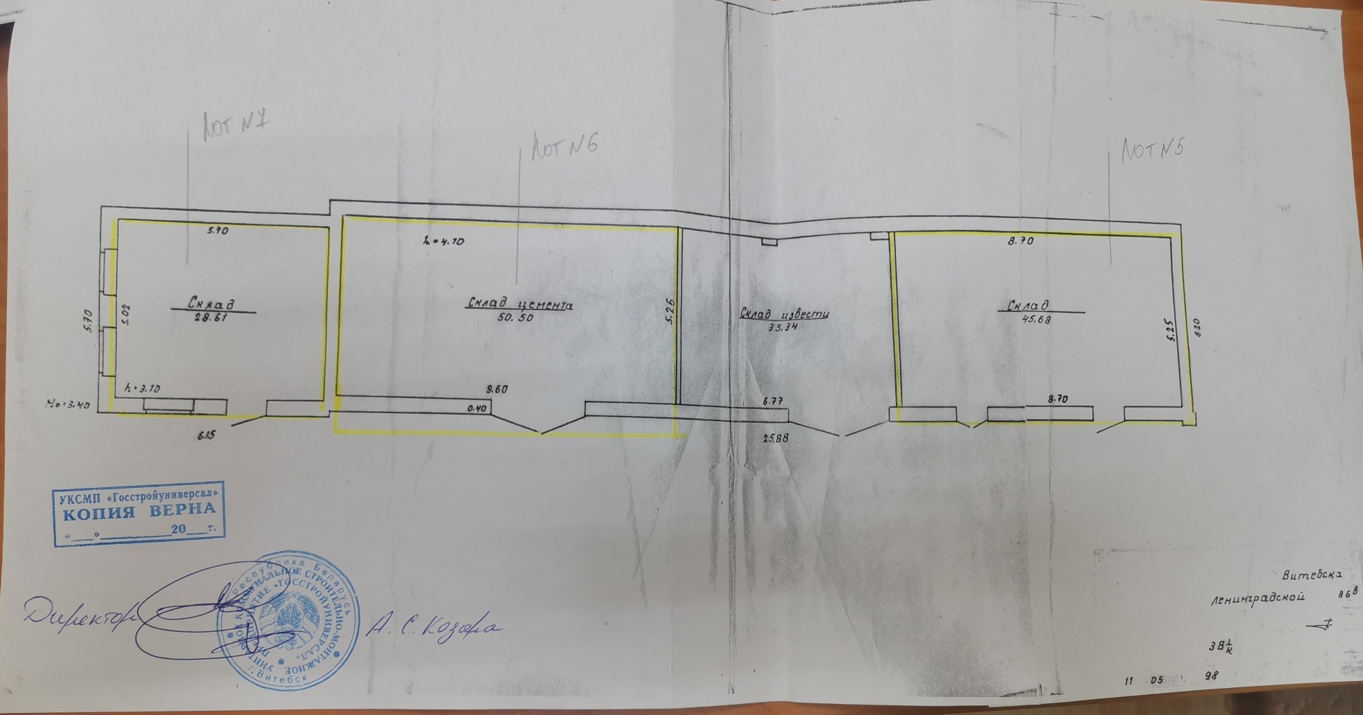Лот №6. Право заключения договора аренды сроком на 3 года части кап. строения с инв. №200/С-66416 (наименование – склады, назначение – здание специализированное складов, торговых баз, баз материально-технического снабжения, хранилищ) – помещения без системы отопления площадью 50,50 кв.м. по адресу: Витебская обл., г. Витебск, ул. Ленинградская, 86В для использования под склады, производство. Размер коэффициента к базовой ставке арендной платы равен 1,5.