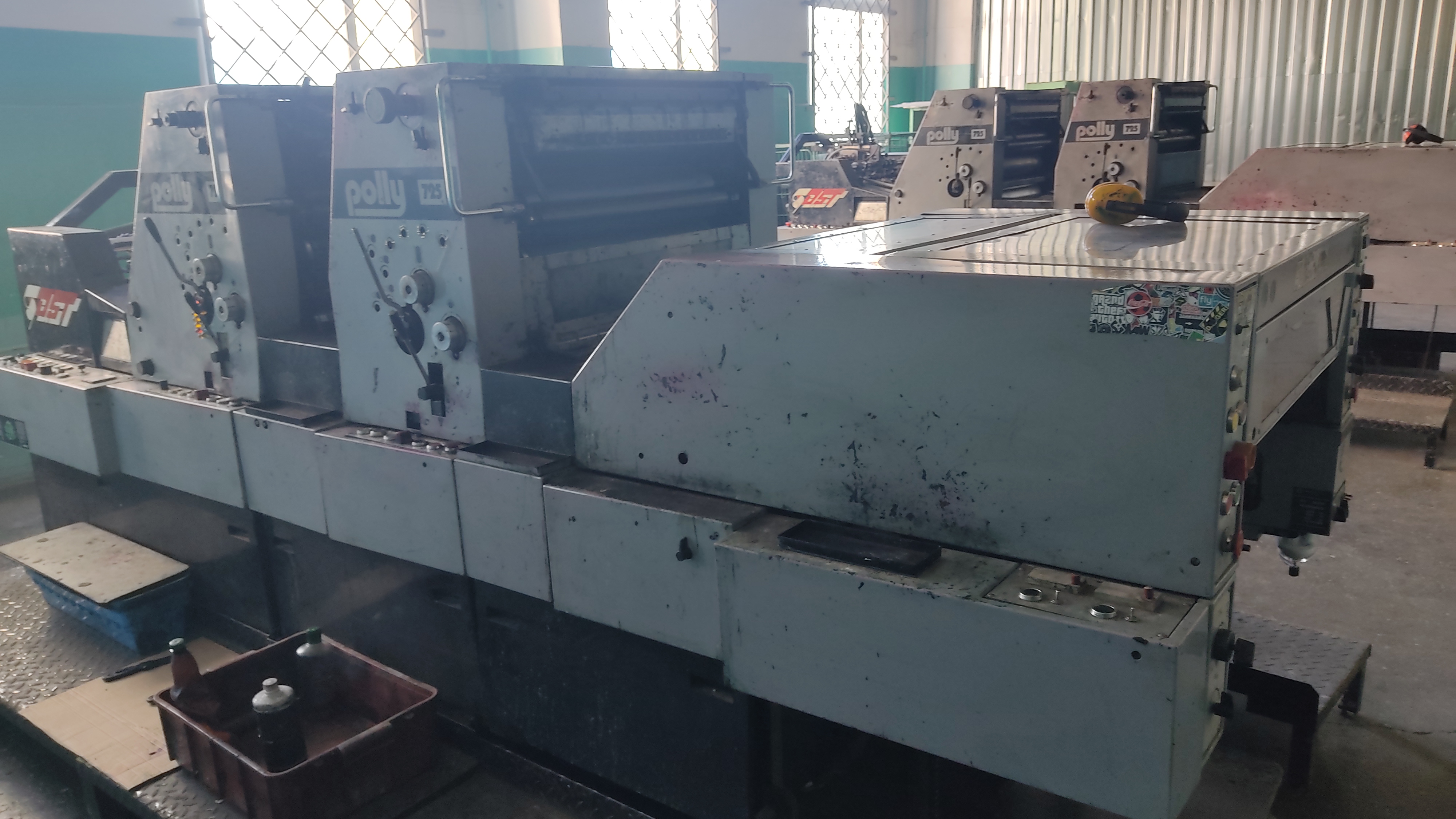 Лот № 3. Машина для офсетной печати POLLY-725PR, инв. № 00155.Оборудование и инвентарь: Грибок с фикс. красная-кнопка АЕ-22, РФ, 7 шт.; Линейка металич. 30см (12*1), Китай; Лист 6*500*500мм; ПОЛИУРЕТАH ПЛИТА 500*500*10М; Чехлы для увлажняющих валов 40мм, 24,00 пог. м; Перчатки КЩС-2, латекс, 0,35 мм, 300мм, без подкладки, черный., РБ, 2 пар ; Кнопка управления SB-49 Грибок с фиксацией красная 1з+1р КС, Китай, 2 шт.; Кольцо графитовое ф 50,2*30,5мм, РБ, 2 шт.; Корпус, 4 шт.; Кран шар. 1/4, РФ; Лопатки графитовые 95*41,5*4, РБ, 7шт.; Подшипник 180902с9 Россия, 7шт.; Подшипник 38206, 2 шт.; Подшипник N305, 2 шт.; Подшипник 180204 (6204 2 RS), Россия, 2шт.; Подшипник 180205, Россия, 10 шт.; Подшипник шариковый D30mm, Россия, 14 шт.; Ремень Z (0)-1000, Китай, 2 шт.; Ремень Z (0)-710, Китай; Ремень Z (0)-900, Китай, 3 шт.; Съемник двухзахватный 35-80мм усил. с фиксацией стяжн. болтами, Китай; Наушники противошумные СОМ3-3 н/у; Шестигранник 2,5мм, Тайвань; Hp-метр 98103 Сhecker1, Румыния; ВОРОHКА; ГИГРОМЕТР ВИТ-1(0+25) УКРАИHА; КАЛЬКУЛЯТОР; КЛЮЧ ГАЕЧHЫЙ 7*8; КЛЮЧ ГАЕЧHЫЙ ДВУХСТОР.8-10РБ; КЛЮЧ ШЕСТИГРАHHИК 4; КЛЮЧ ШЕСТИГРАHHИК 6; КОHТЕЙHЕРА– в количестве 4 шт.; Ключ Г-образный 6-гр длинный с шаром 5мм, Китай; МОЛОТОК; Микропереключатель Z15GW22-В, Россия, 6 шт.; НАСОС ВОЗДУШНЫЙ ПАВ-60; Отвертка с отверст. Плоская; ШКАФ ТИПА ШМ (БШ-2), ПРОИЗВОДИТЕЛЬ, ООО "ЦЕHТР-МЕТ", РБ; ШПАТЕЛЬ ШП РБ, 2 шт.; Шпатель нержавеющий 80мм арт.040252, Польша, 2 шт.; ЯЩИК ДЛЯ ПЛАСТИH; Спрей Антискин Kruse 400мл, Италия, 2 шт. |