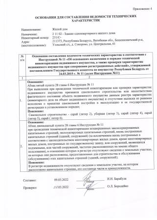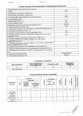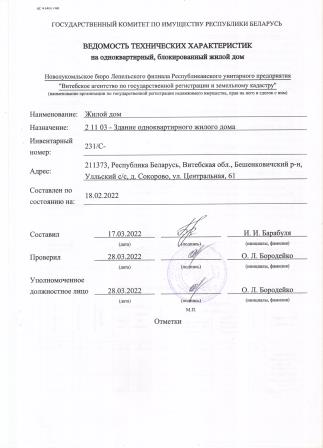 Объект недвижимости: капитальное строение с инв. № б/н, расположенное по адресу: Витебская область, Бешенковичский район, Улльский с/с, д. Сокорово, ул. Центральная, 61; наименование: жилой дом; назначение: здание одноквартирного жилого дома; общая площадь – 54,6 м.кв.