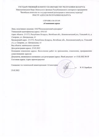 Наименование Открытое акционерное общество Бешенковичи агросервис