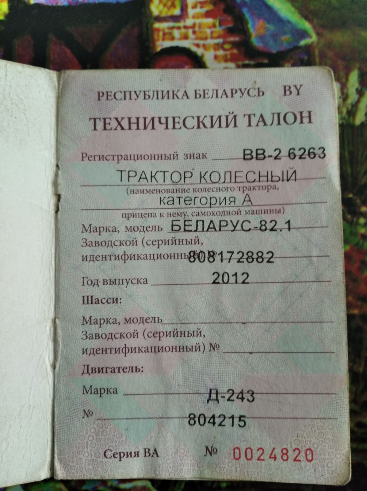 Лот №19. Движимое имущество. Информация о предмете торгов, в т.ч. место нахождения:Трактор колёсный Беларус-82.1 2012 г.в. рег.знак ВВ-2 6263, инв. № 409, по адресу: Витебская область, Бешенковичский район, Бочейковский сельсовет, аг. Бочейково. |