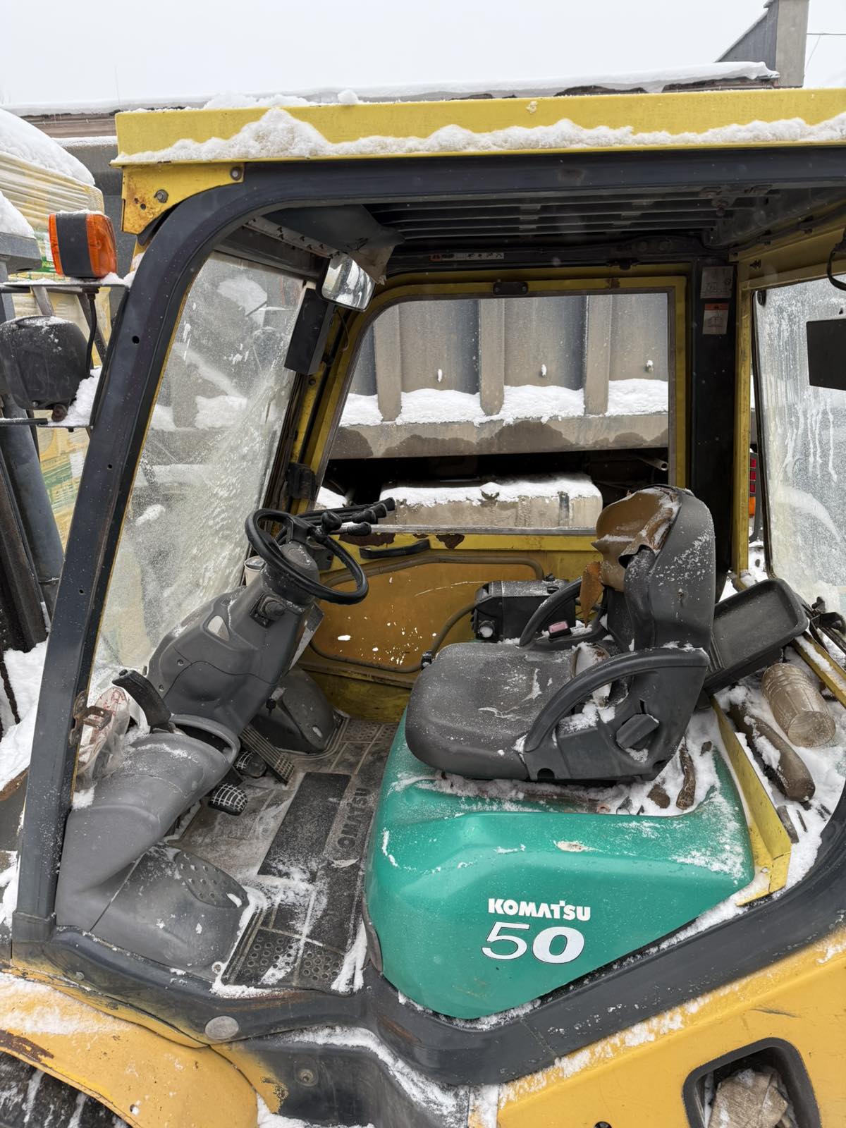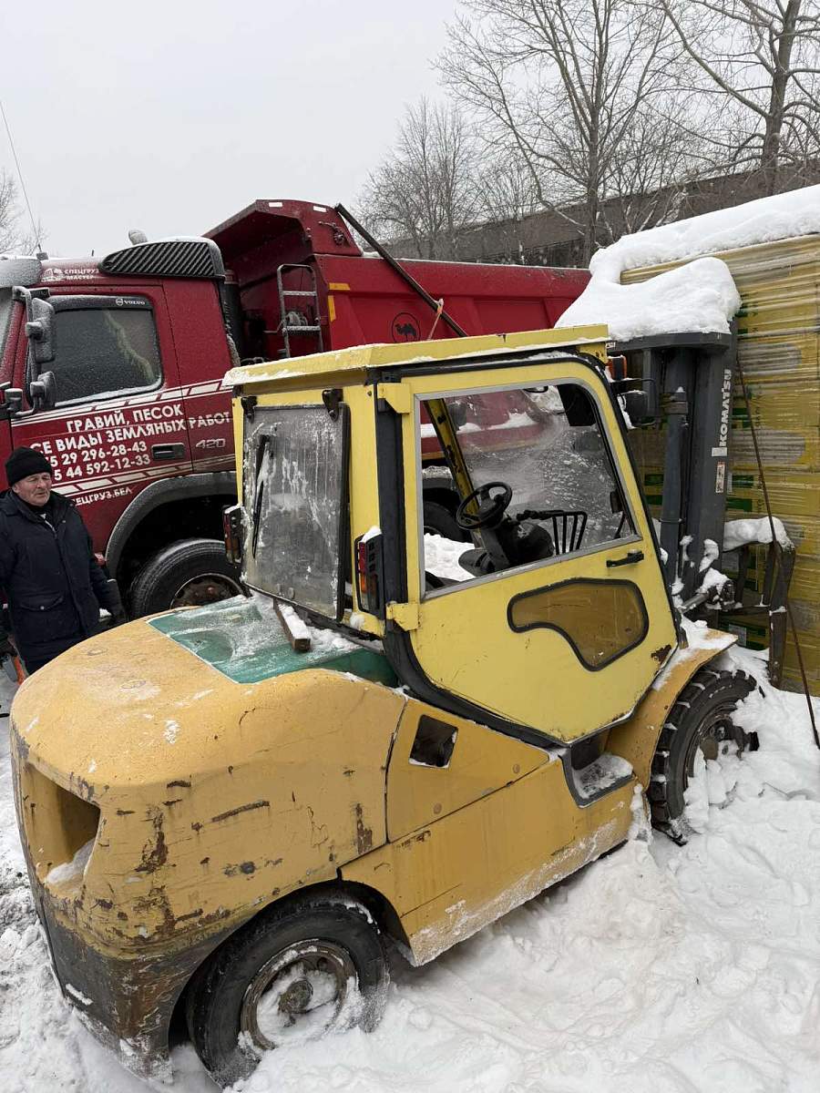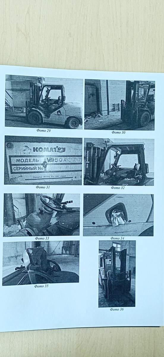 Погрузчик вилочный дизельный KOMATSU FD50AYT-10 FV-3.3; Год выпуска - 2010; Регистрационный знак - ; Кузов (VIN) № - 133812, инвентарный № 501319. Двигатель дизельный S4D95LE3-131553, полная масса 7400 кг., грузоподъемность 5000 кг., высота подъема 3,3 метра, цвет - желтый/серый/зеленый, продается без вил, в рабочем состоянии.