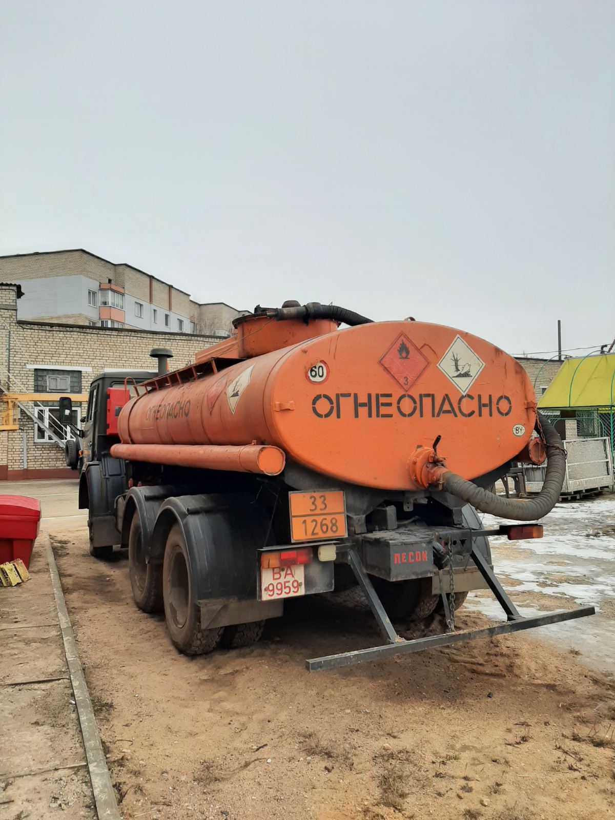 Лот № 1. Грузовая специальная цистерна (топливозаправщик) КАМАЗ 5320, регистрационный знак ВА9959, 1990 года выпуска, тип ТС – грузовой специальный цистерна, кузов (рама) 362265, цвет – тёмно-зеленый, объем двигателя 10,850 л., дизельное топливо, инвентарный № 0508087, пробег – 500000 км.